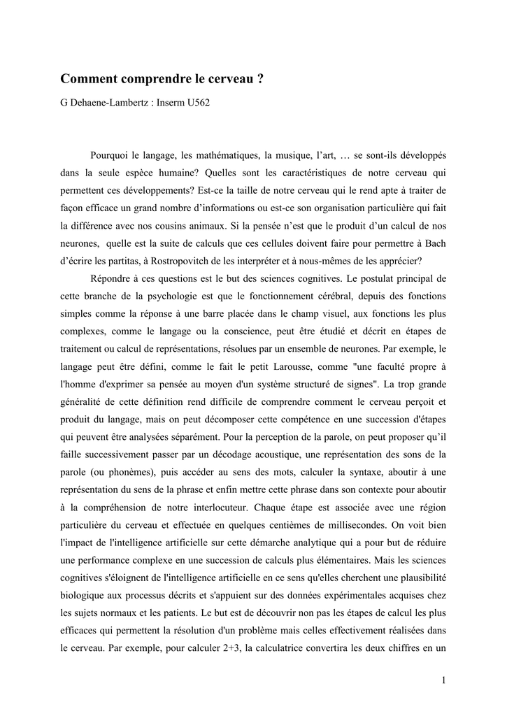 maths !). Ces hypothèses, âprement discutées, opposent localisateurs et tenants d’un cerveau