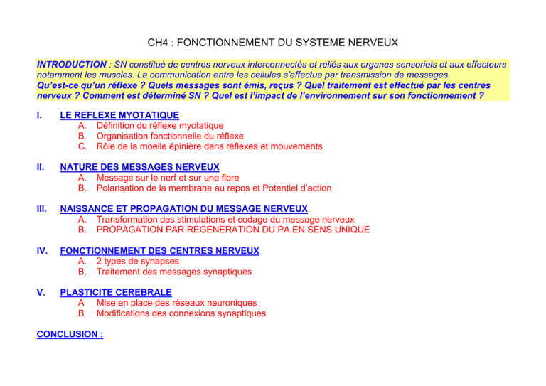 B. ORGANISATION FONCTIONNELLE DU REFLEXE :