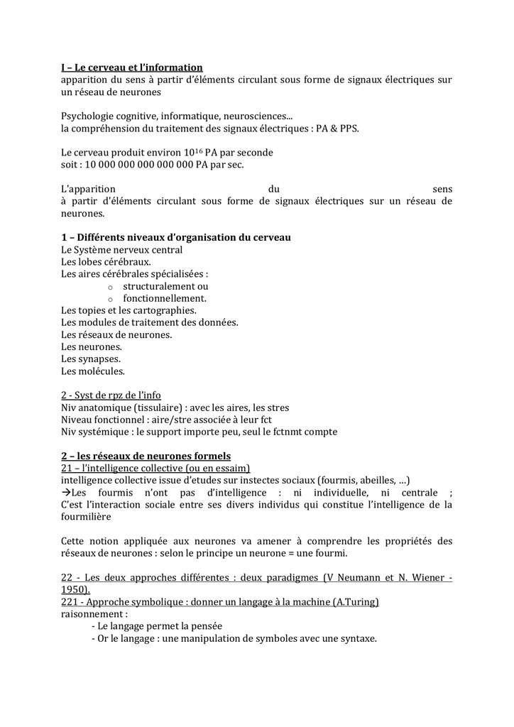 I – Le cerveau et l’information