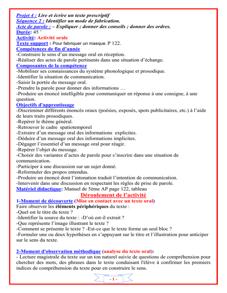 Acte de parole : – Expliquer ; donner des conseils ; donner des ordres.