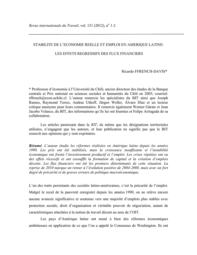 employeurs, deux phénomènes accentués par les réformes du Consensus de Washington.