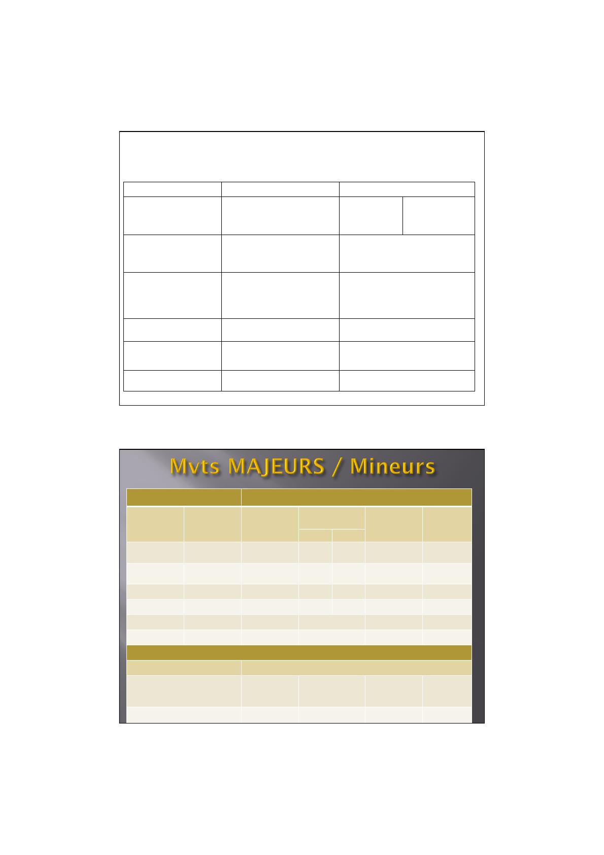 Mouvement MAJEUR Mouvements Mineurs