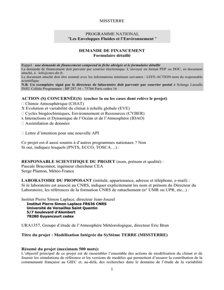 cadre du GIEC. Le projet couvre la réalisation de ces simulations et leur exploitation scientifique directe.