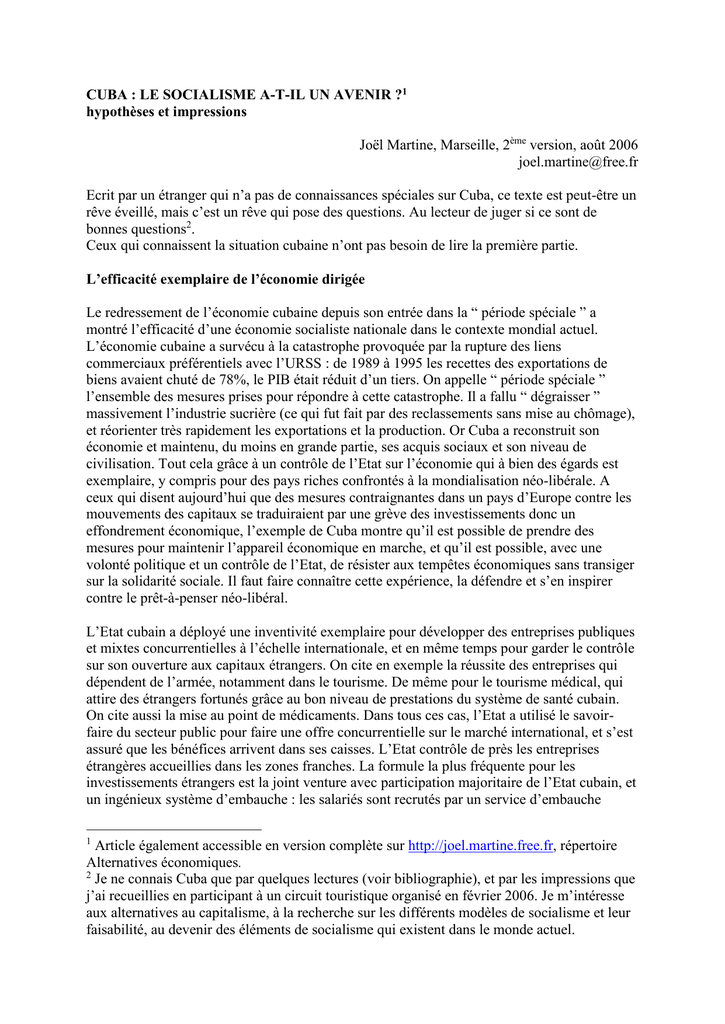 capitaux étrangers, bref, contrairement à la Chine Cuba ne peut pas espérer dans un avenir
