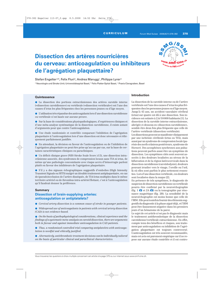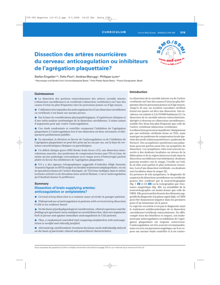 Dissection des artères nourricières du cerveau: anticoagulation ou