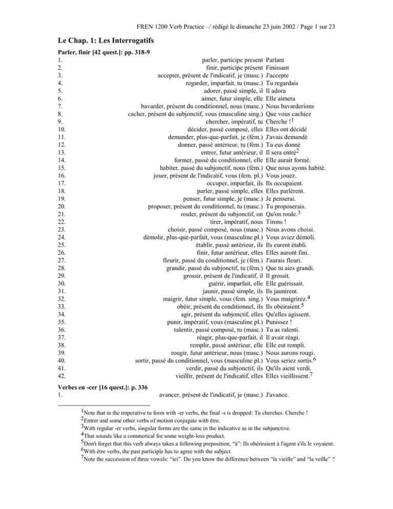 FREN 1200 Verb Practice –/ rédigé le dimanche 23 juin 2002 / Page 4 sur 23
