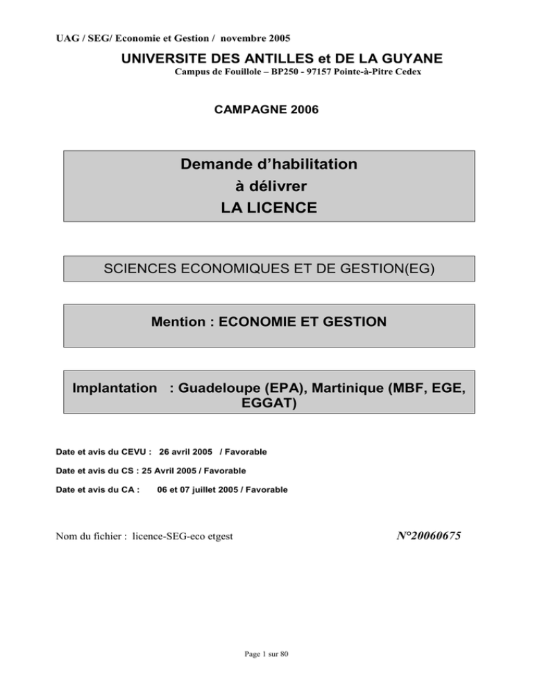 UAG / SEG/ Economie et Gestion / novembre 2005
