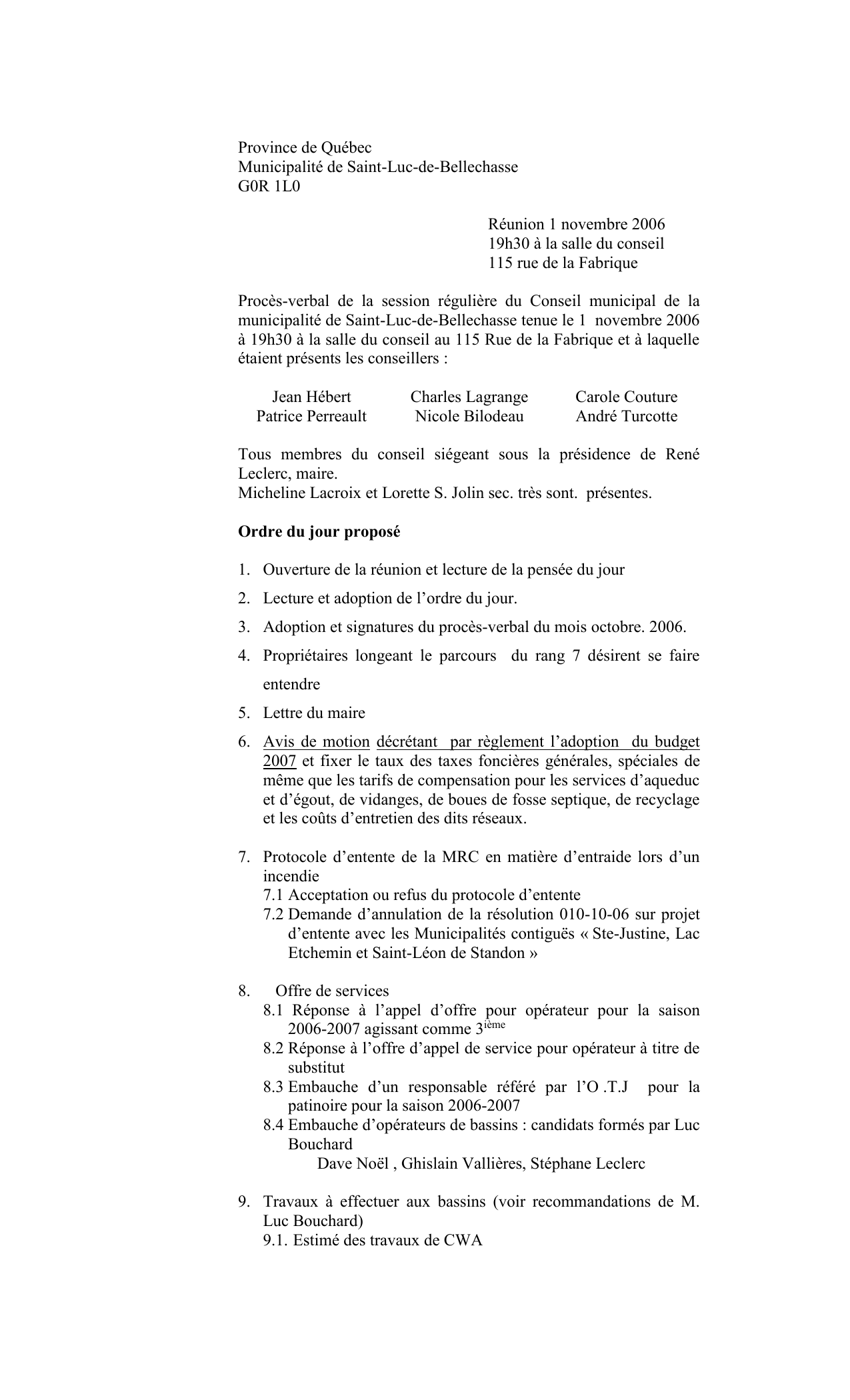 Pour l’exercice financier 2006, le Conseil municipal prévoyait un