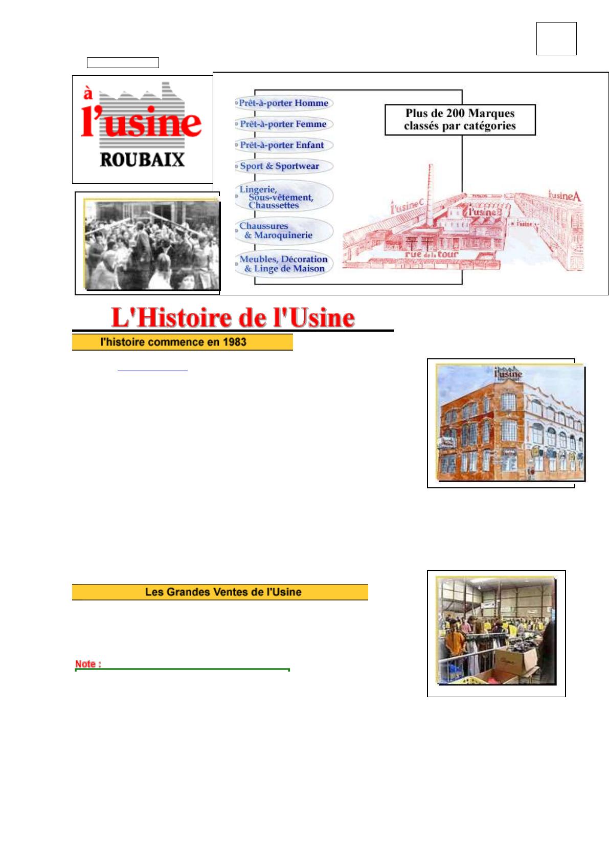 C'est ainsi, qu'au cours des années 1980 et 1990, l'Usine a accueilli Les Aubaines de la Redoute, Excédence 3 Suisses, les Affaires de la Blanche