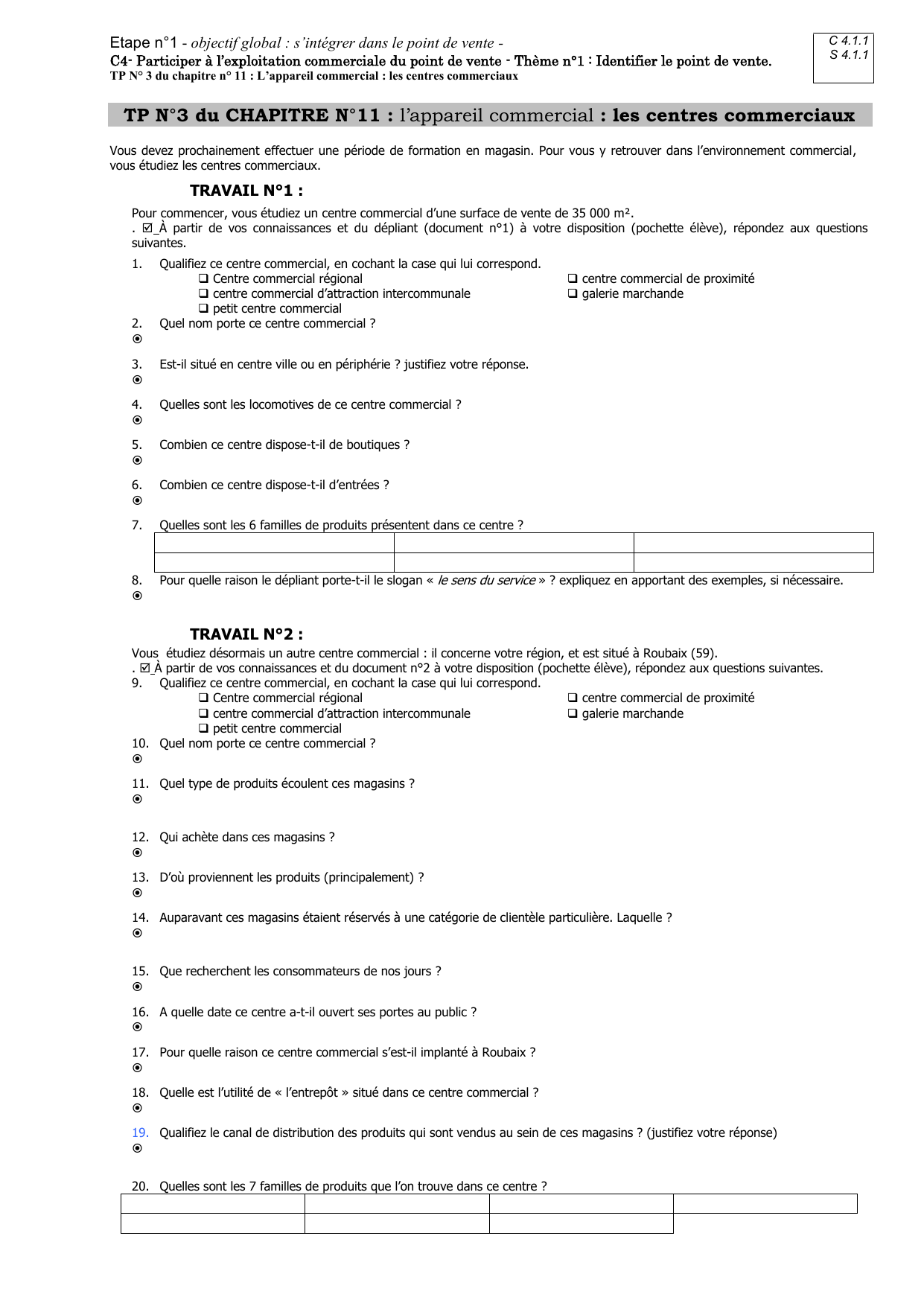 TP N°3 du CHAPITRE N°11 : l’appareil commercial : les centres commerciaux