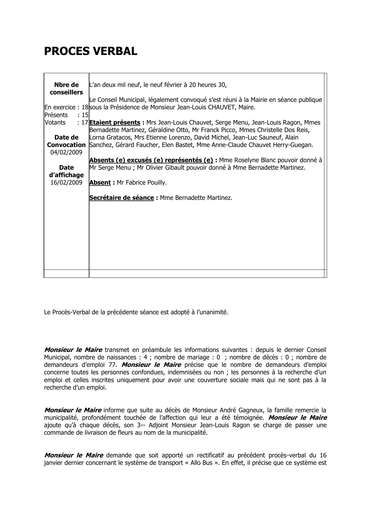 avait porté ce point à l’ordre du jour lors de son conseil municipal du 08 septembre 2008.