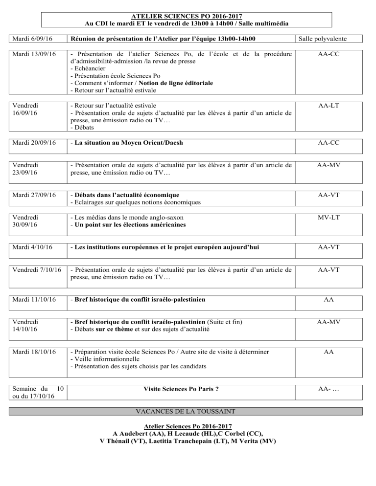 - Présentation de l’atelier Sciences Po, de l’école et de la procédure