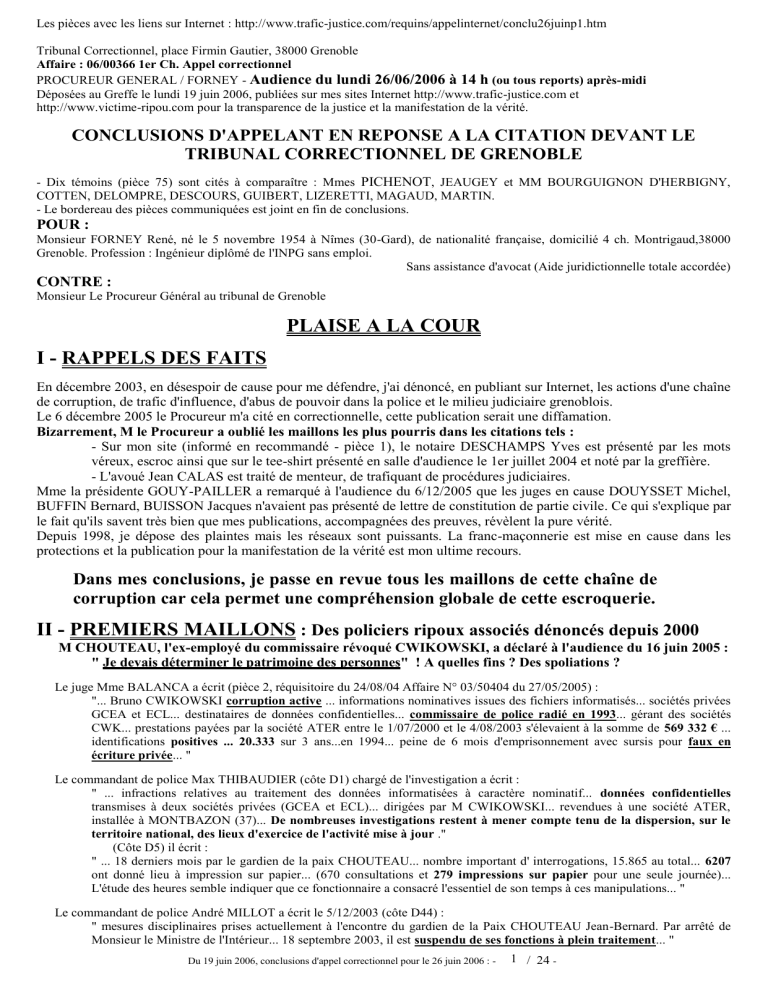 Du 19 juin 2006, conclusions d'appel correctionnel pour le 26 juin 2006 : - / 24 -