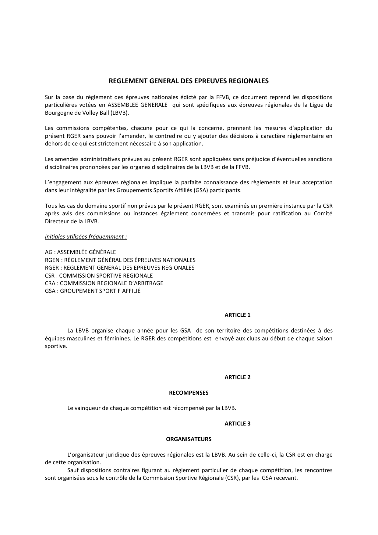 Le calendrier de toutes les compétitions régionales est établi par les soins de la CSR et proposé à