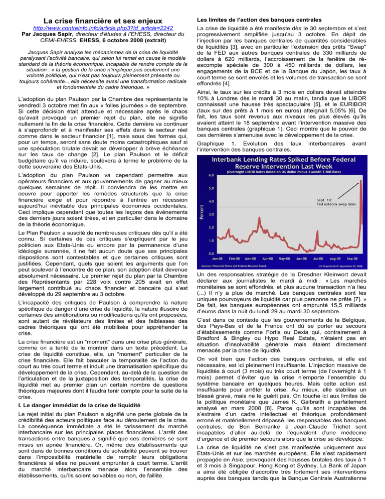 décrit la situation comme « The interbank lending markets remains