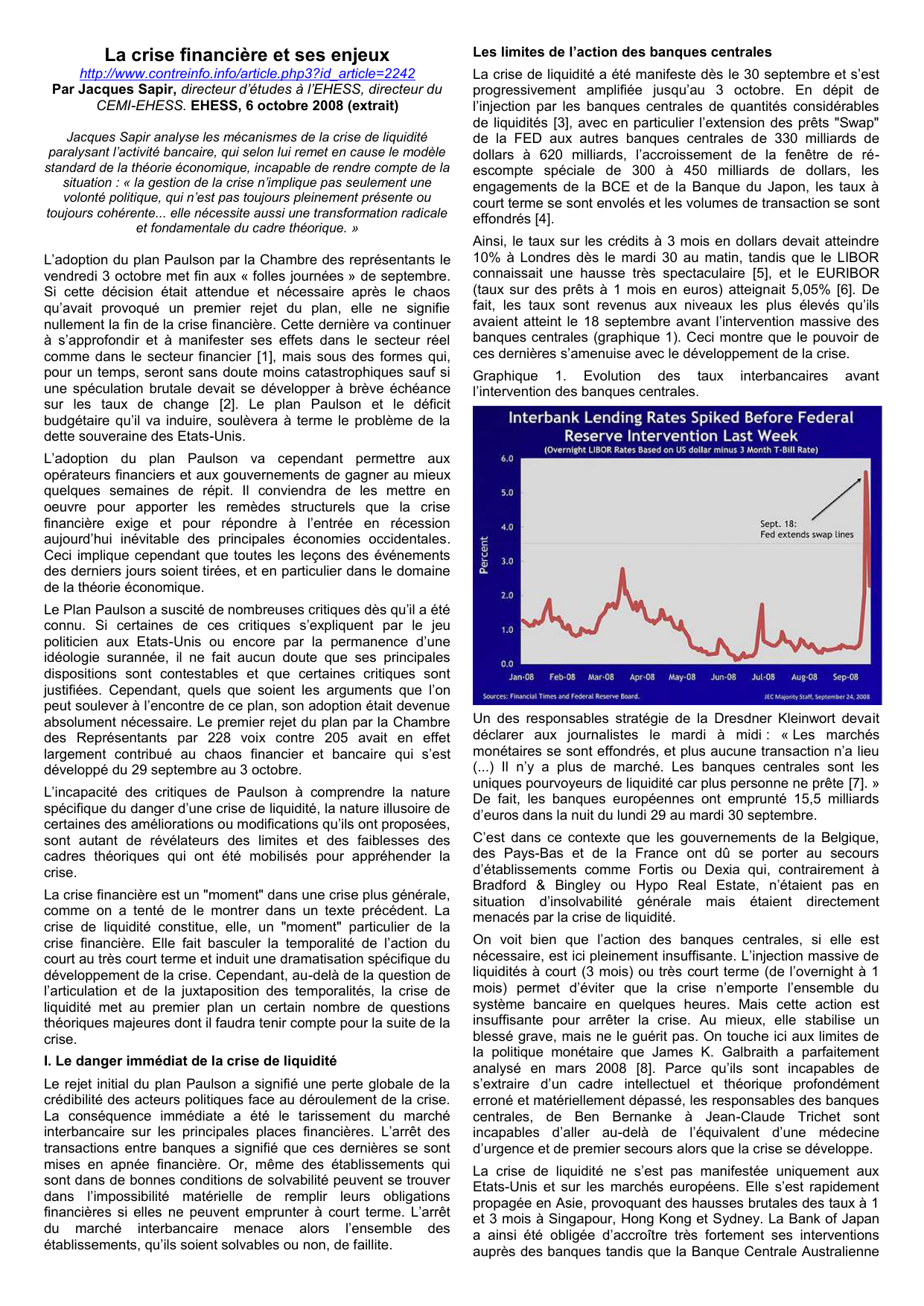 [1] Ce qui était prévisible dès le printemps 2008. Voir J. Sapir,