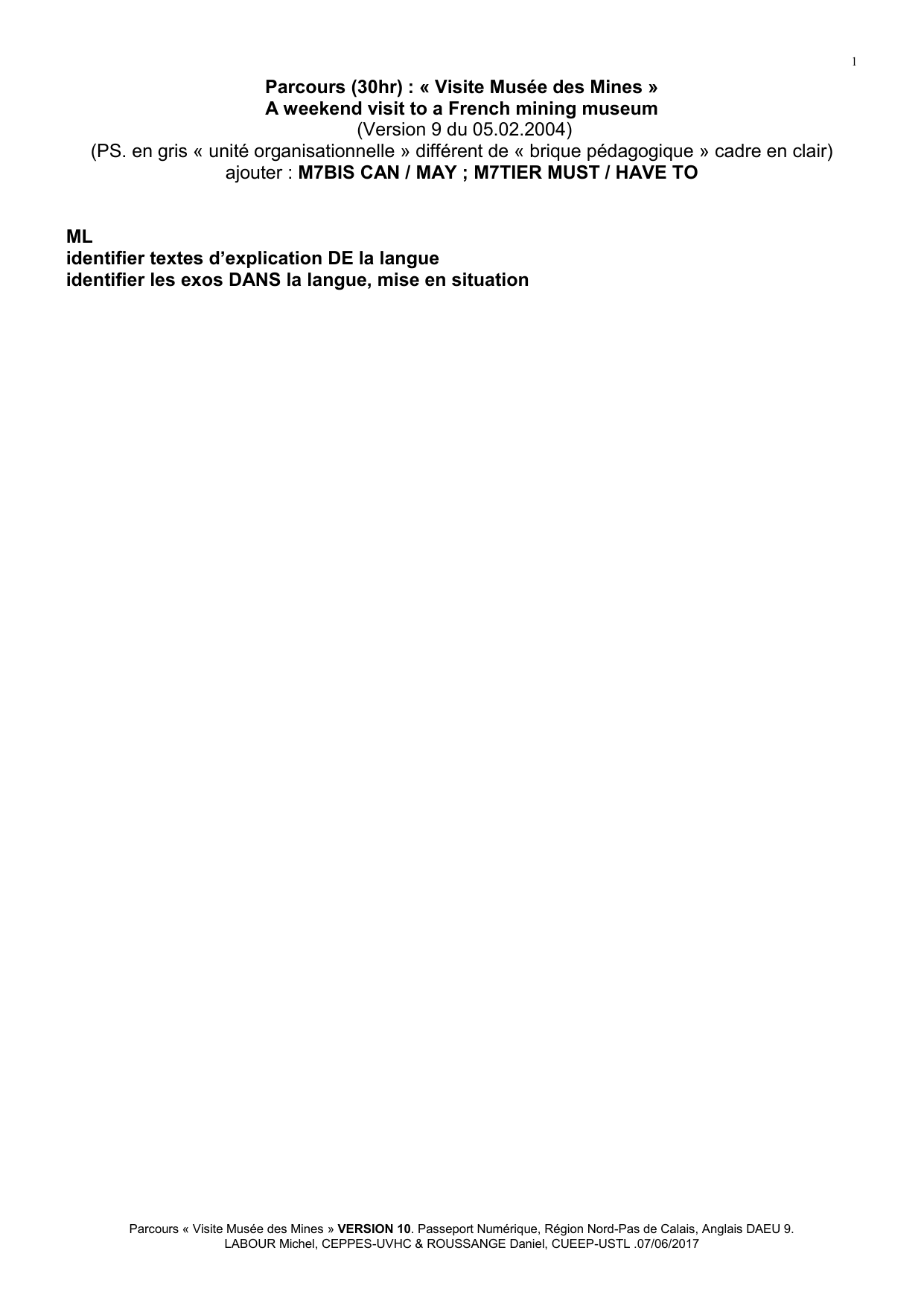 Parcours « Visite Musée des Mines » VERSION 10. Passeport Numérique, Région Nord-Pas de Calais, Anglais DAEU 9.