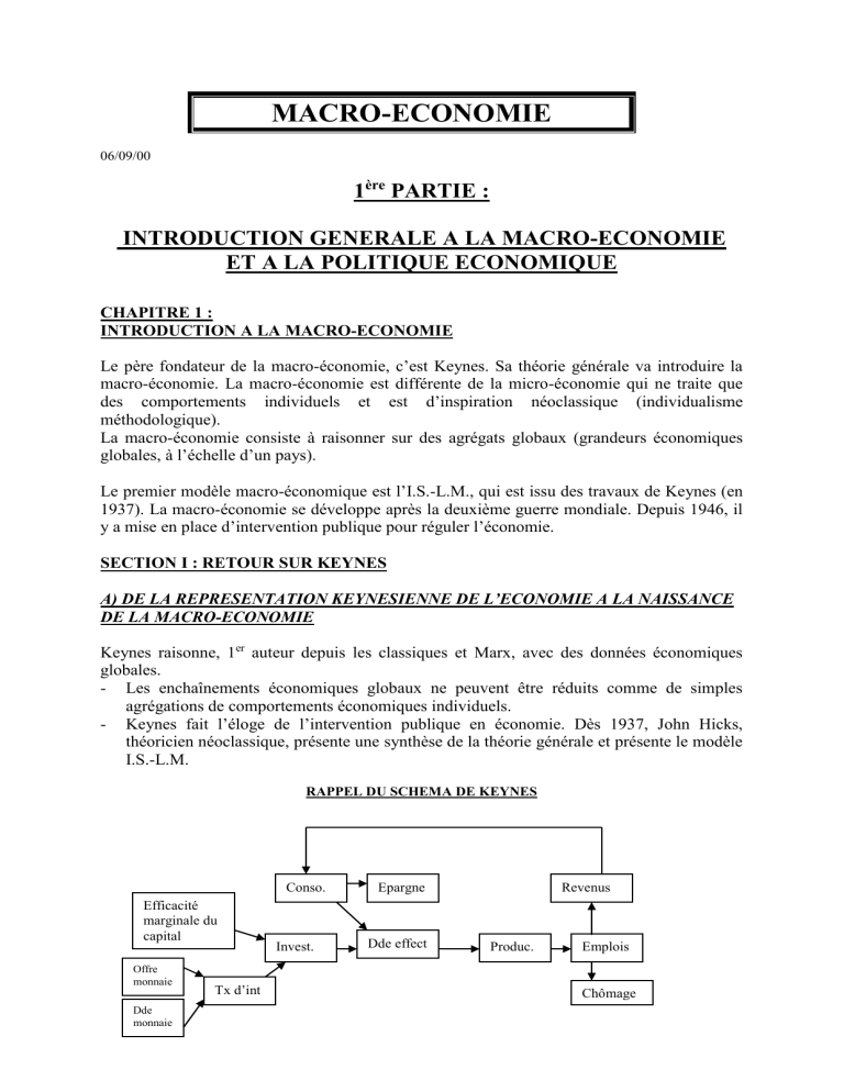 théorie générale. Il utilise un schéma appelé I.S.-L.M. qui devient la base de la micro-