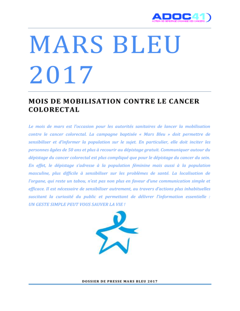 MARS BLEU : Mois de mobilisation nationale contre le cancer colorectal ...................................... 5