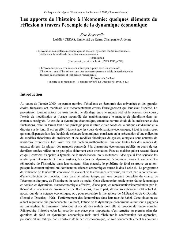 Colloque « Enseigner l’économie », les 3 et 4 avril 2002, Clermont-Ferrand