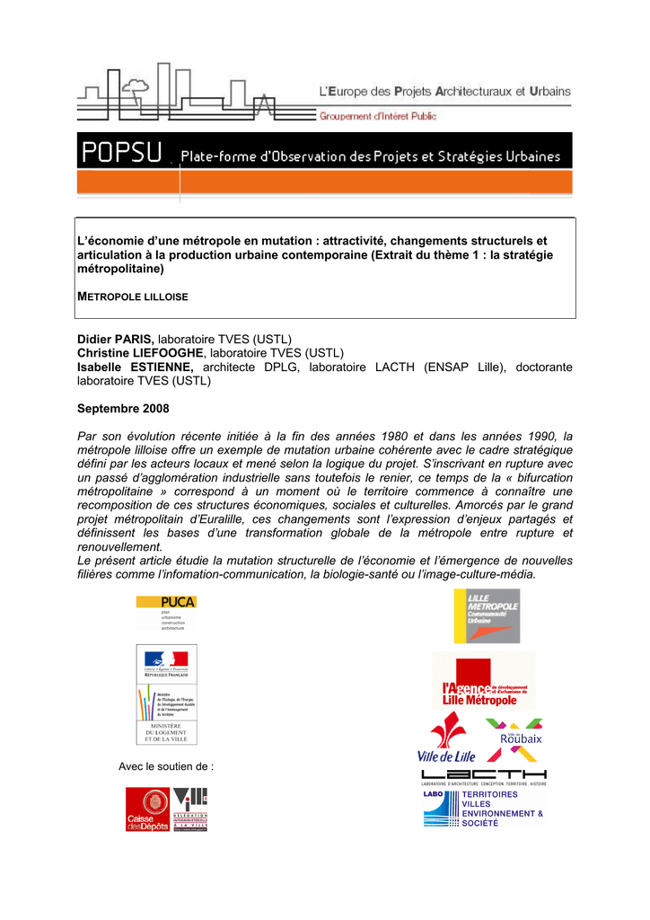 POPSU-Lille, rapport final (2008) Tome 2 Mis à jour : le 02/06/08