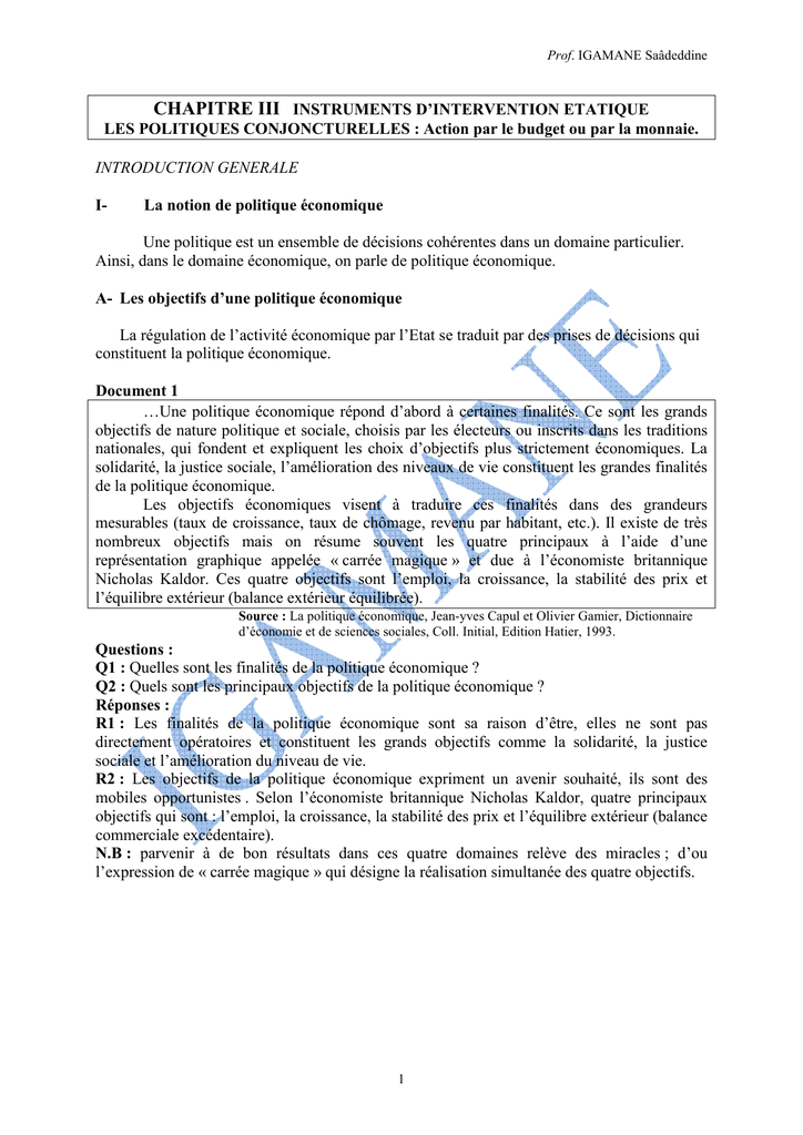 des instruments de politique économique adaptés à la conjoncture.