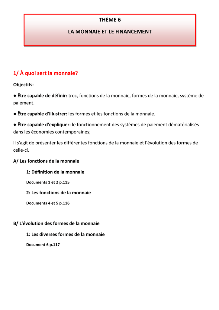 ● Être capable de définir: masse monétaire, marché monétaire, banque centrale, prêteur
