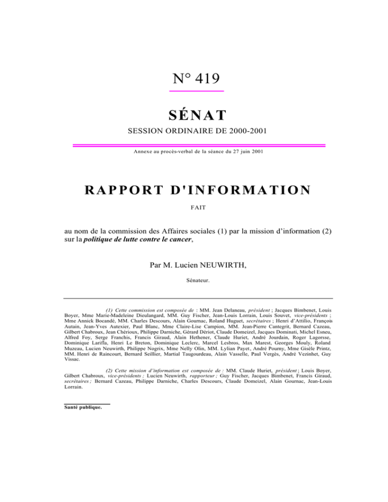 SANTÉ, SUR LA POLITIQUE DE LUTTE CONTRE LE CANCER (JEUDI 14