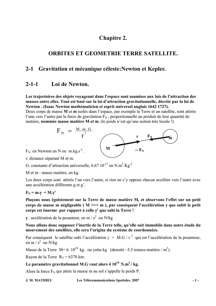 Par conséquent le satellite subi l’accélération γ = M.G / r