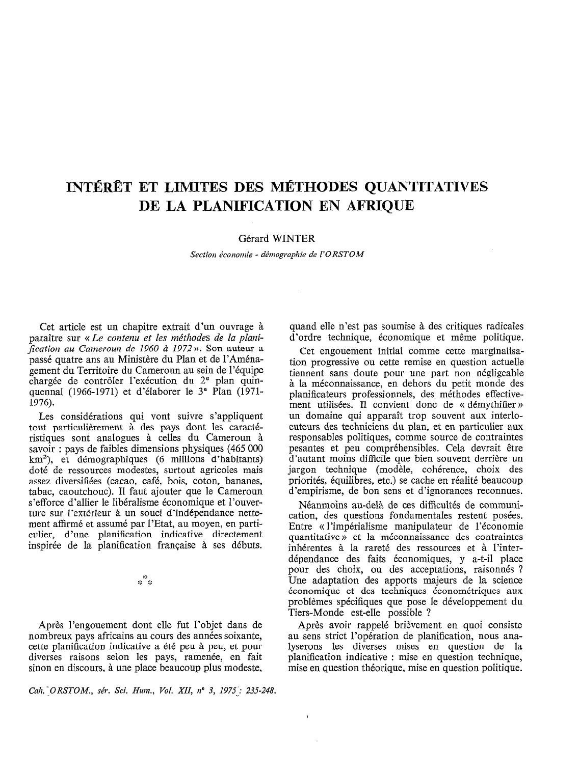 Col~. ORSTOM, SI+. Sci. H~Z., vol. XII, no 3, 1975 : 235-248.