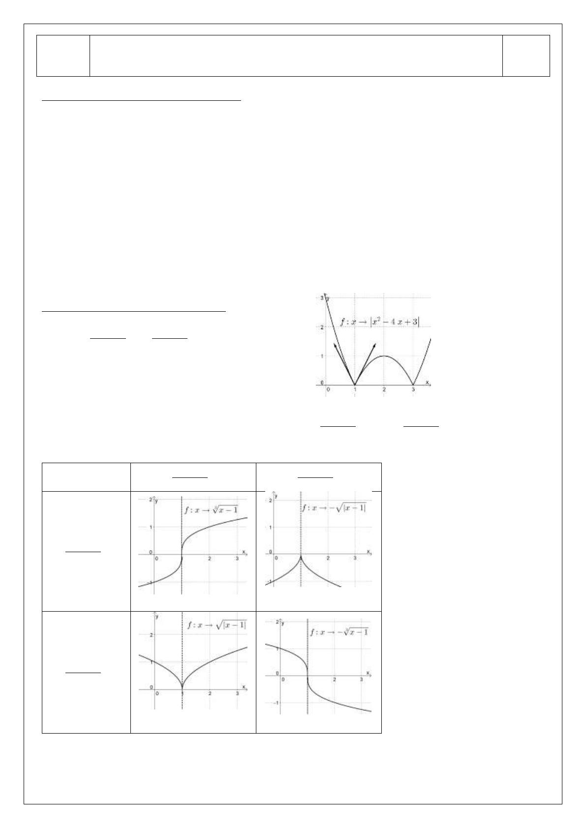 • Si fD’(a) et fG’(a) existent, mais sont distinctes, alors f n’est pas dérivable en a.