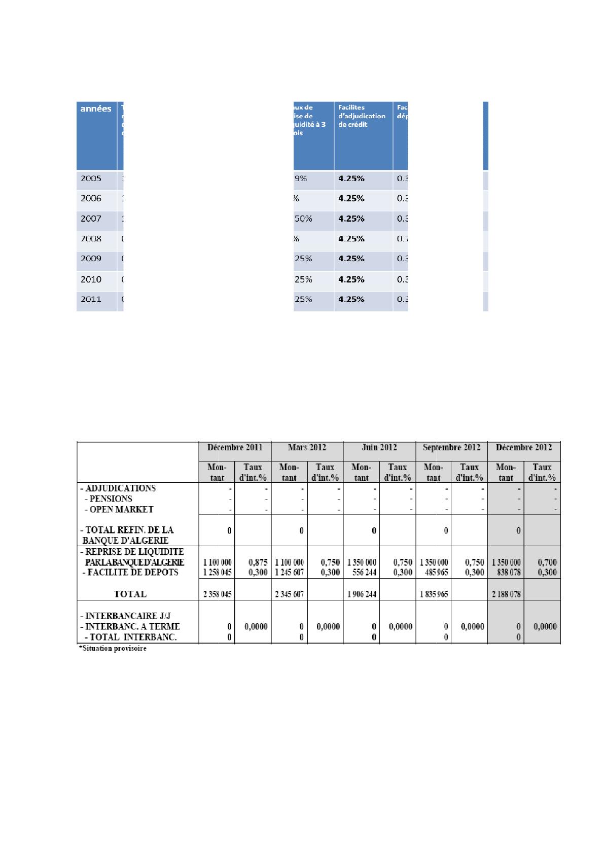 Ainsi, en Algérie la politique monétaire préconise pour atteindre son objectif d’assurer la stabilité