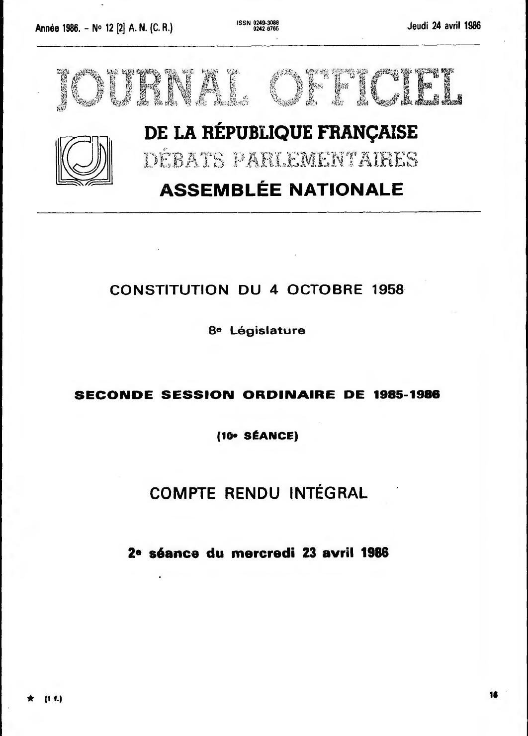 SEANCE DU 23 AVRIL 1988