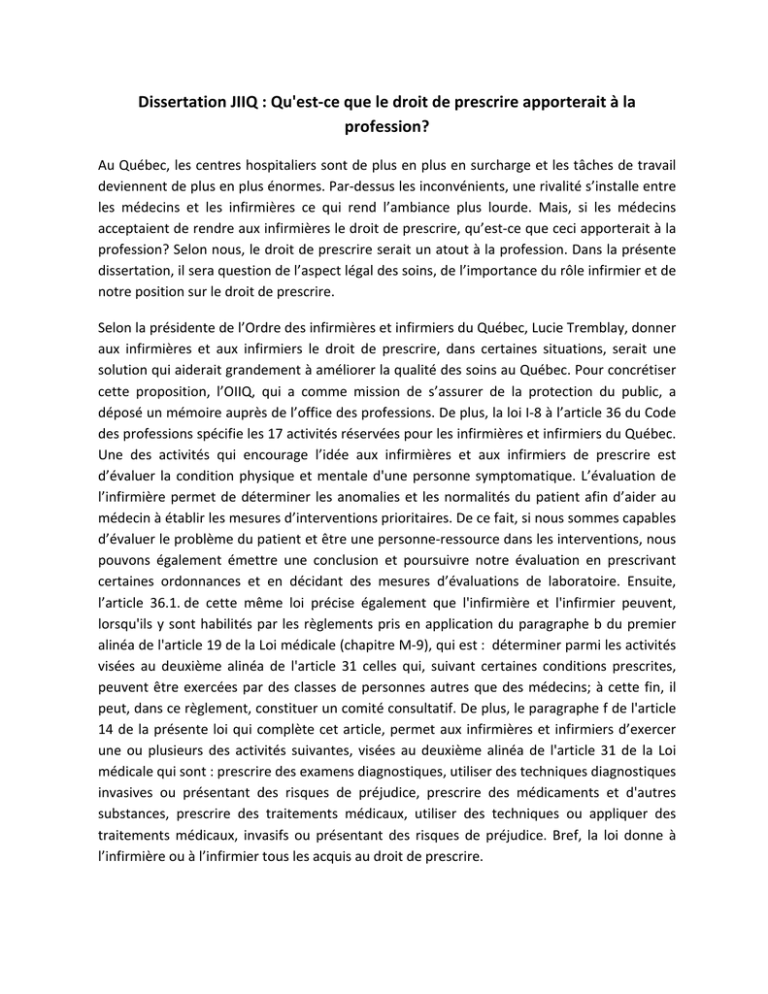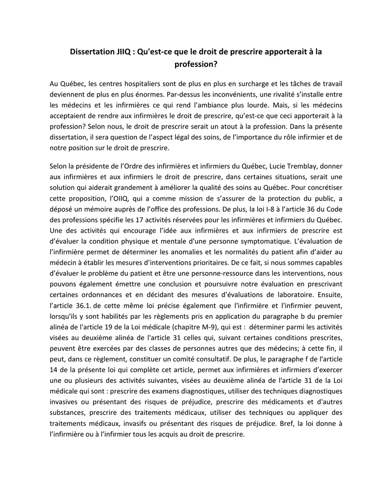 Dissertation JIIQ : Qu`est-‐ce que le droit de prescrire