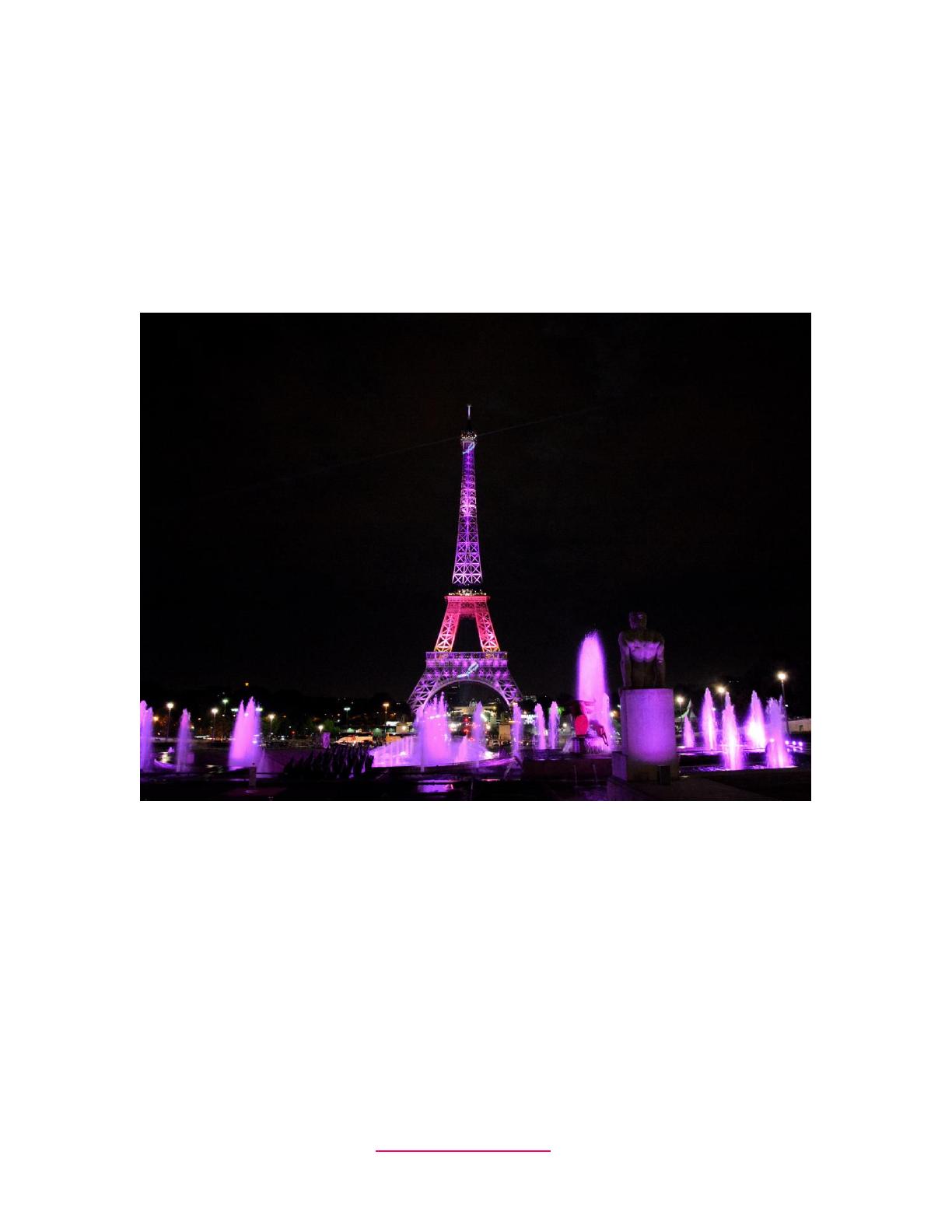 illuminations spectaculaires des fontaines de Varsovie et de la Tour Eiffel et la présence d’un ruban rose