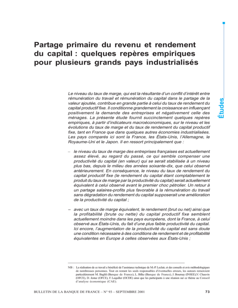 Partage primaire du revenu et rendement du capital