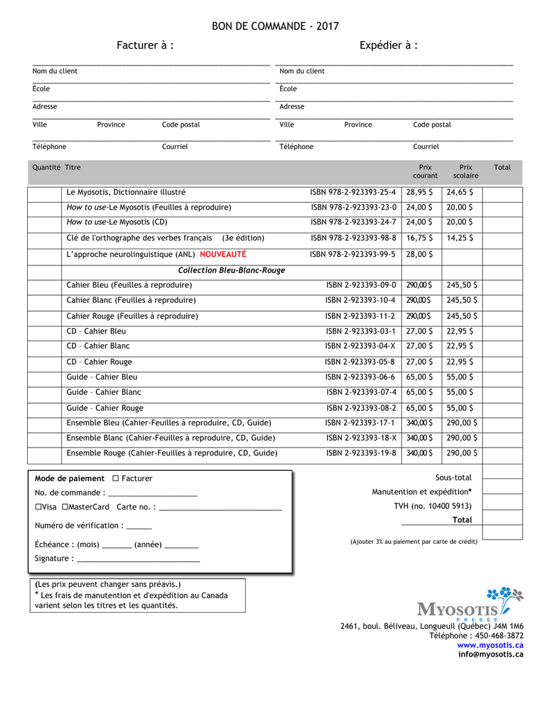 Mode de paiement ¨ Facturer No. de commande : ______________