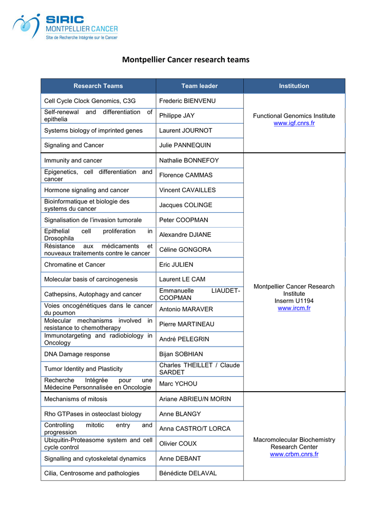 Montpellier Cancer research teams