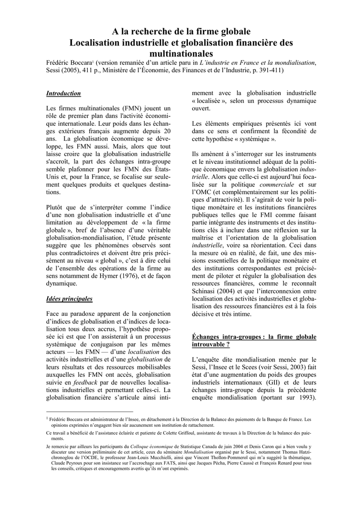 globalisation des entreprises s’étant accrue de façon