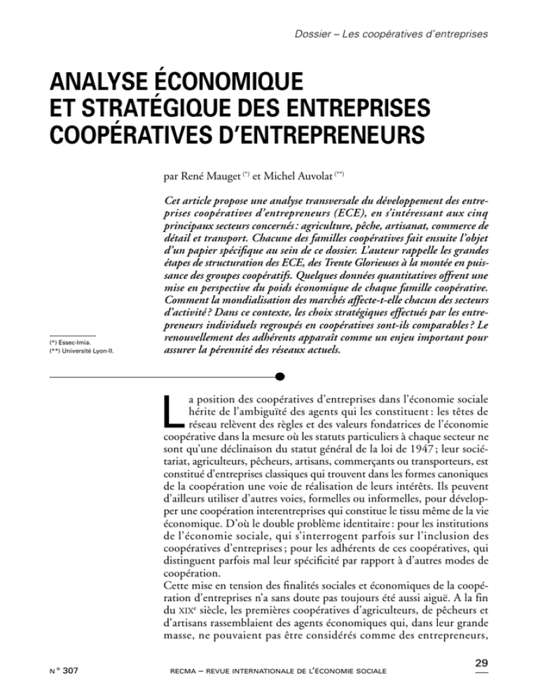 Analyse économique et stratégique des entreprises coopératives d’entrepreneurs