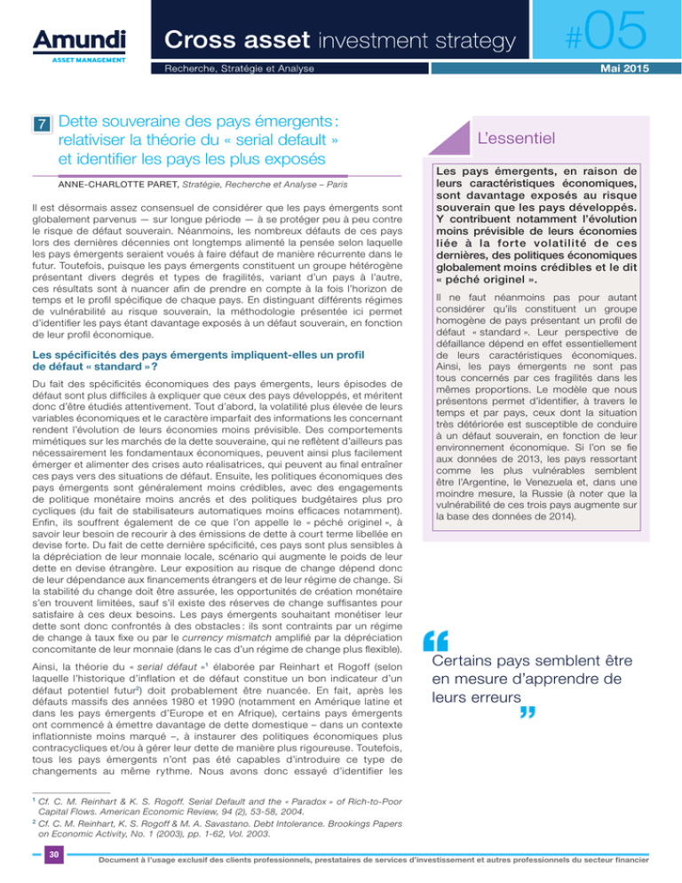 être plus ou moins enclin à un défaut souverain, en fonction de son profil