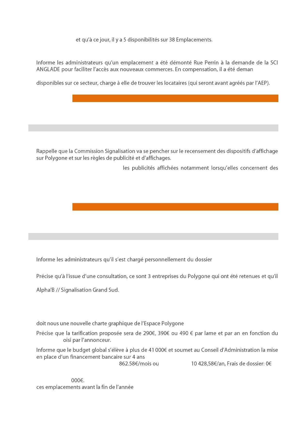 ANGLADE de prendre à sa charge pendant 3 ans la location de 2 emplacements qui restaient