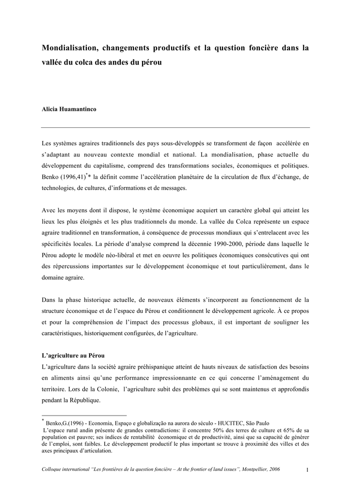 cadre légal et institutionnel qui a été mis en œuvre au Pérou, entre les années 1990-2000, se caractérise