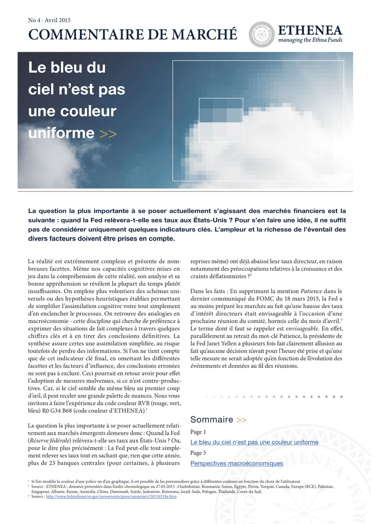 ETHENEA | Commentaire de Marché No 4 · Avril 2015