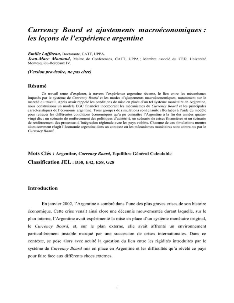 particulièrement instable, comme celui qu’a connu l’Argentine, ces mécanismes d’ajustement