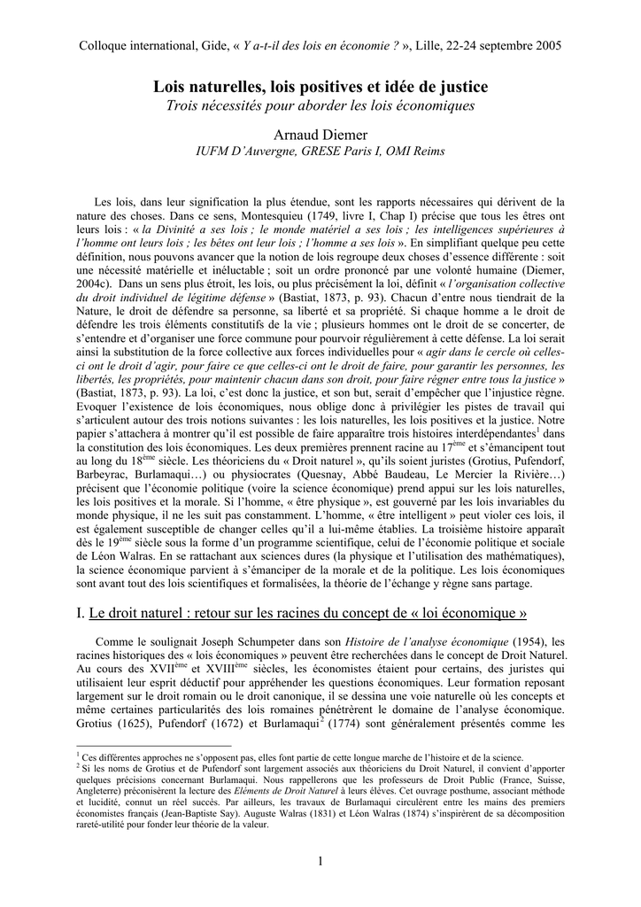 Colloque international, Gide, « Y a-t-il des lois en économie ? », Lille, 22-24 septembre 2005