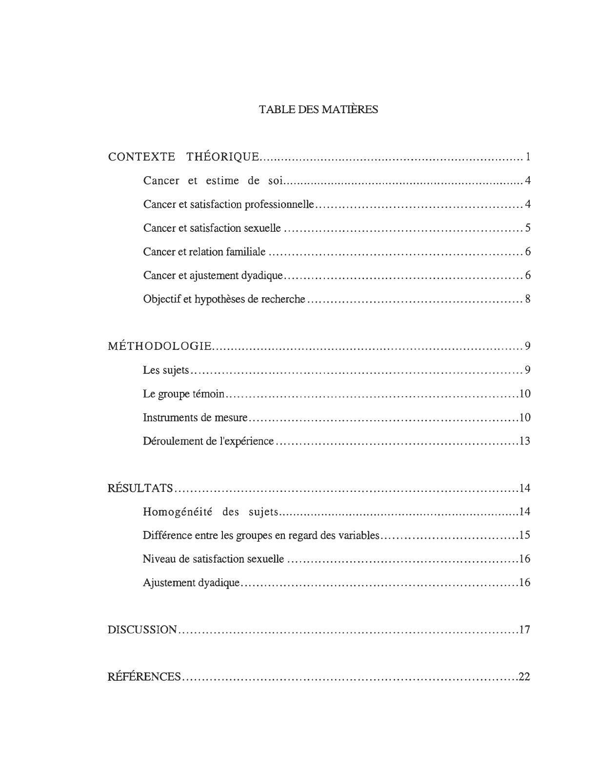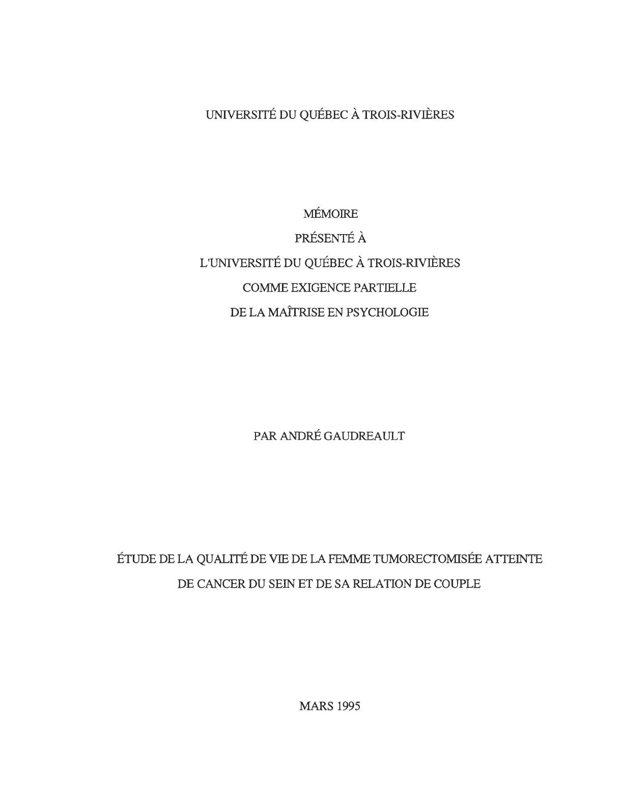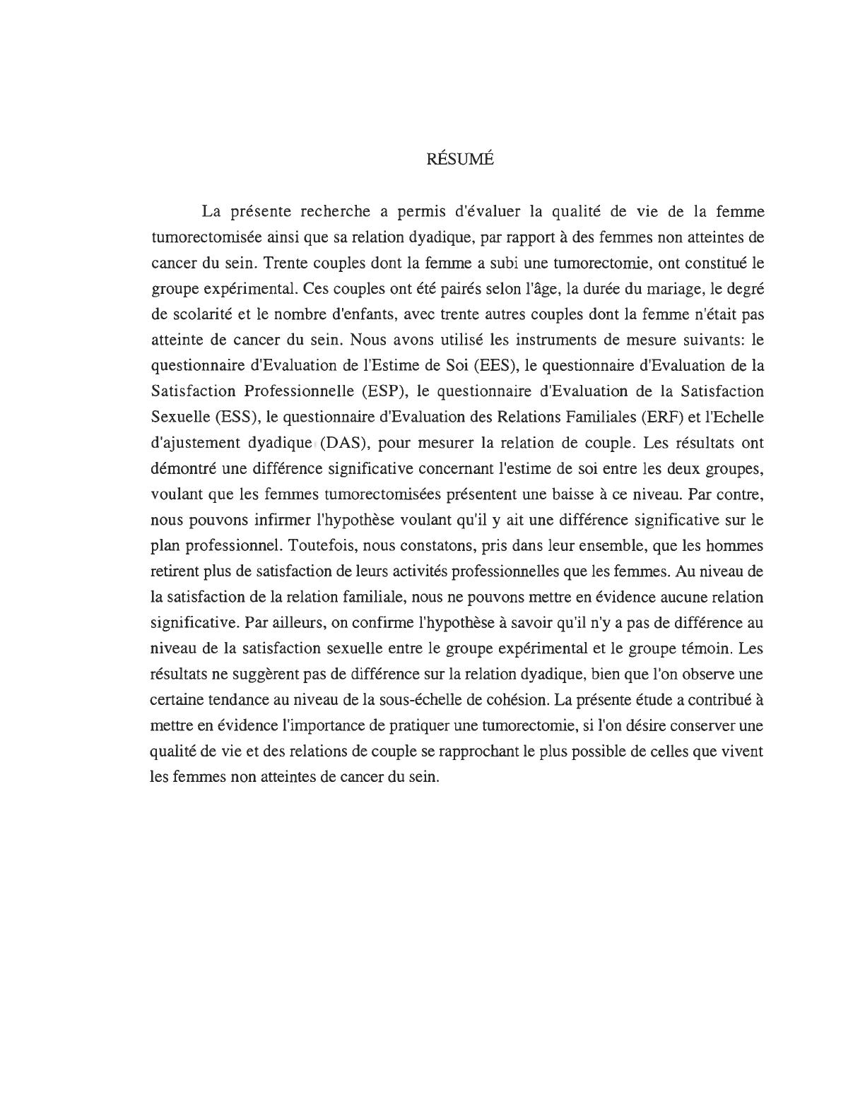 tumorectomisée ainsi que sa relation dyadique, par rapport à des femmes non atteintes de