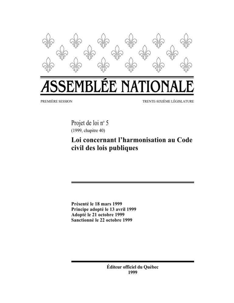 (1999, chapitre 40) Loi concernant l`harmonisation au Code civil des