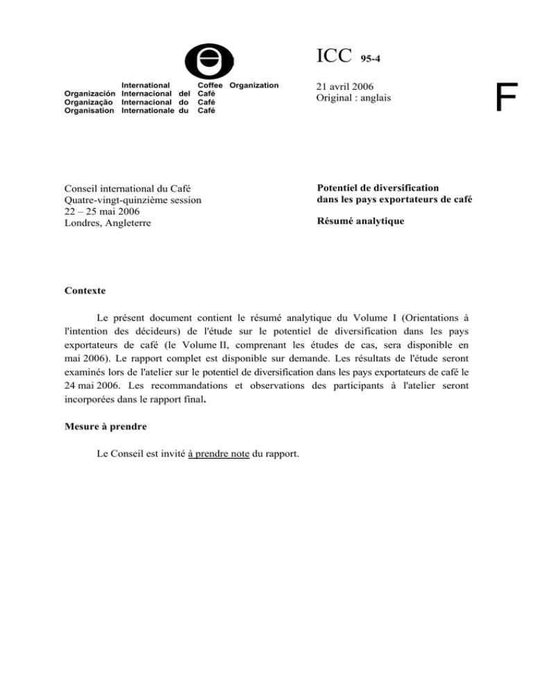 avons élaboré le principe de Diversification des activités dans les pays et zones caféicoles