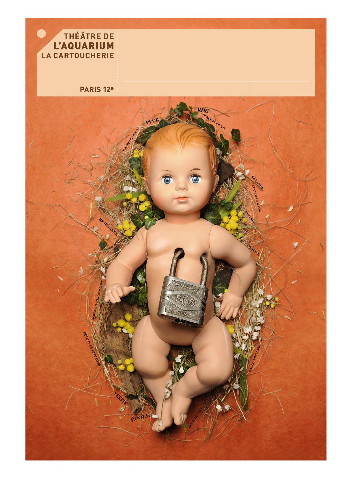 L’affiche désuète, un brin macabre qui nous présente une poupée en plastique, entourée de fleurs et affligée d’un gros cadenas, nous